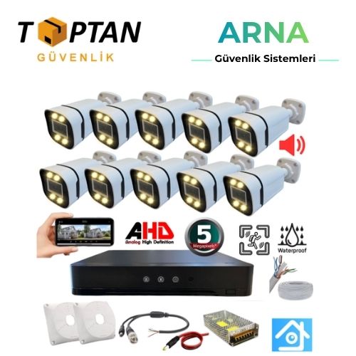 10 ADET 5 MP 4 ATOM WARM LED SESLİ WATERPROOF IŞIKLI GECE RENKLİ AHD BULLET GÜVENLİK KAMERASI