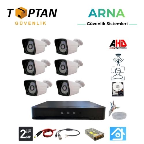ARNA 6 DIŞ KAMERALI 2 MP 1080P 3.6 MM GENİŞ AÇILI 1 TB HARDDİSK DAHİL AHD GÜVENLİK KAMERA SETİ - ST-261000-1