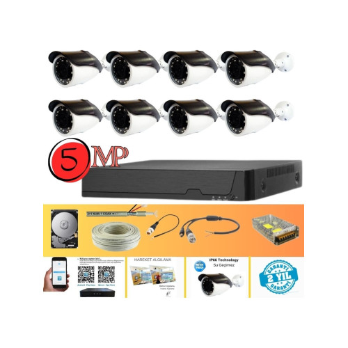 8 ADET - Premium Seri 5 MP 1440P 24 SMD LED Metal Kasa IP66 AHD Güvenlik Kamerası